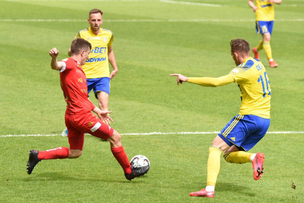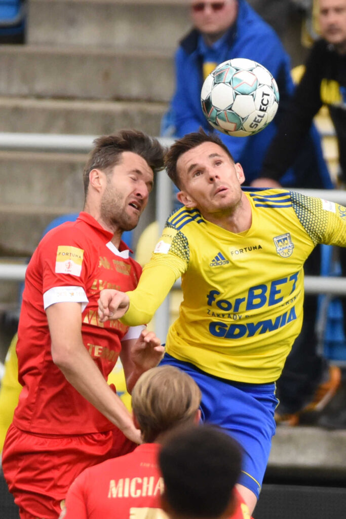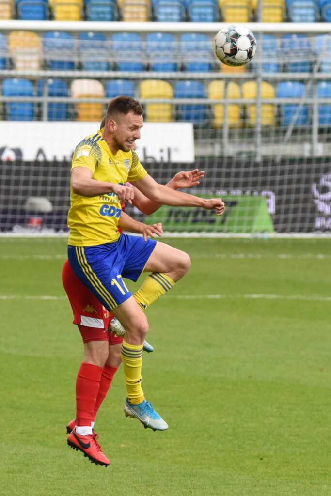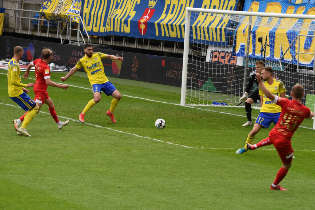 W 30 minucie do głosu doszli goście. Najpierw z piłką w pole karne Arki wpadł Paweł Tomczyk, ale niezbyt udany strzał wpadł w ręce Daniela Kajzera. Chwilę później było groźniej po strzale Patryka Stępińskiego, a sytuację ofiarną interwencją uratował Haris Memić. Ogólnie w tej fazie spotkanie bardziej się wyrównało, mieliśmy więcej walki w środkowej strefie boiska i mogliśmy się spodziewać więcej sytuacji pod naszą bramką.