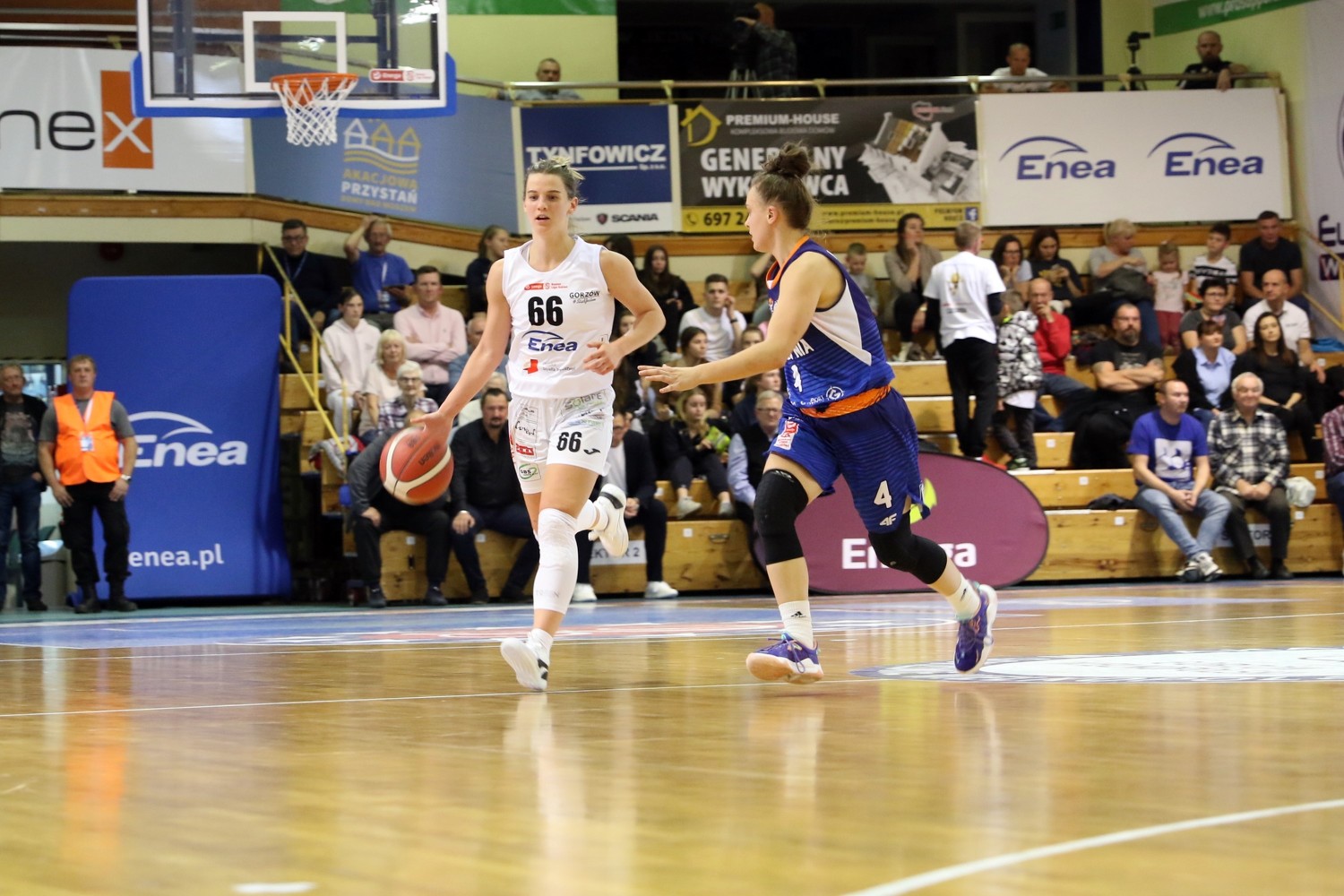 W Gorzowie Wielkopolskim wysoką wygraną odniosły gospodynie, które pokonały GTK Gdynia. Początek spotkania był wyrównany 15:17, jednak kolejne minuty grane były już pod dyktando zespołu trenera Dariusza Maciejewskiego. Przed ostatnią kwartą przewagą uczestnika #EuroCupWoman wynosiła już 17 „oczek” – 60:43 i tylko kataklizm mógł odebrać zwycięstwo. Pierwszy mecz w zespole z Gorzowa Wielkopolskiego zagrała Stella Jonhson, która rzuciła 17 punktów. Mecz z double-double zakończyła Kseniia Tikhonenko – 13 punktów, 15 zbiórek, jednak liderką była Borislava Hristova – 23 punkty. W zespole z Pomorza 14 punktów i 7 zbiórek zapisała na swoim koncie Aleksandra Parzeńska, a Anna Wińkowska dodała 11 „oczek” oraz zebrała 6 piłek.