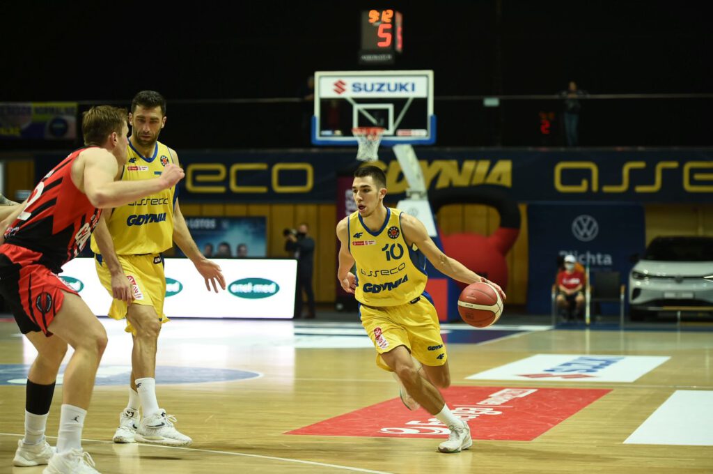 Rewelacyjnie spotkanie rozpoczął jeszcze niedawny arkowiec Mikołaj Witliński – dzięki jego akcjom goście prowadzili 8:0, a po trójce kolejnego eksgdynianina Bartosza Jankowskiego było jeszcze wyżejj! A po kolejnym zagraniu Witlińskiego przewaga gości wynosiła aż 18 punktów (2:20)! Asseco Arka miała ogromne problemy ze swoim atakiem, chociaż grę “rozruszał” trochę Anthony Durham. Po 10 minutach i trafieniu Adriana Kordalskiego było 10:23.