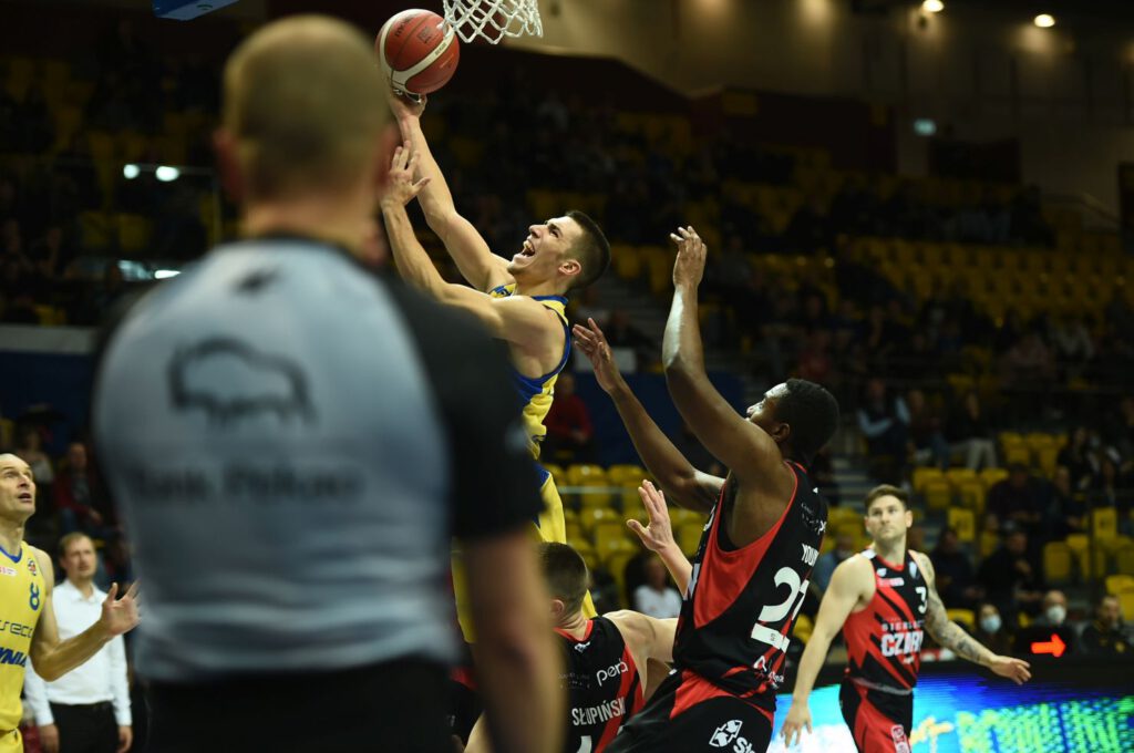 W drugiej kwarcie niezły fragment zanotował Nikola Misković, ale nie wystarczało to do efektywnego odrabiania strat. Ciągle bardzo dobrze grał Witliński, a swoje rzuty dokładał Jakub Musiał. Kolejne akcje Marka Klassena i Witlińskiego sprawiły, że po pierwszej połowie było 45:22 dla Grupa Sierleccy Czarnych, a niedawny koszykarz Asseco Arki miał na koncie aż 19 oczek!