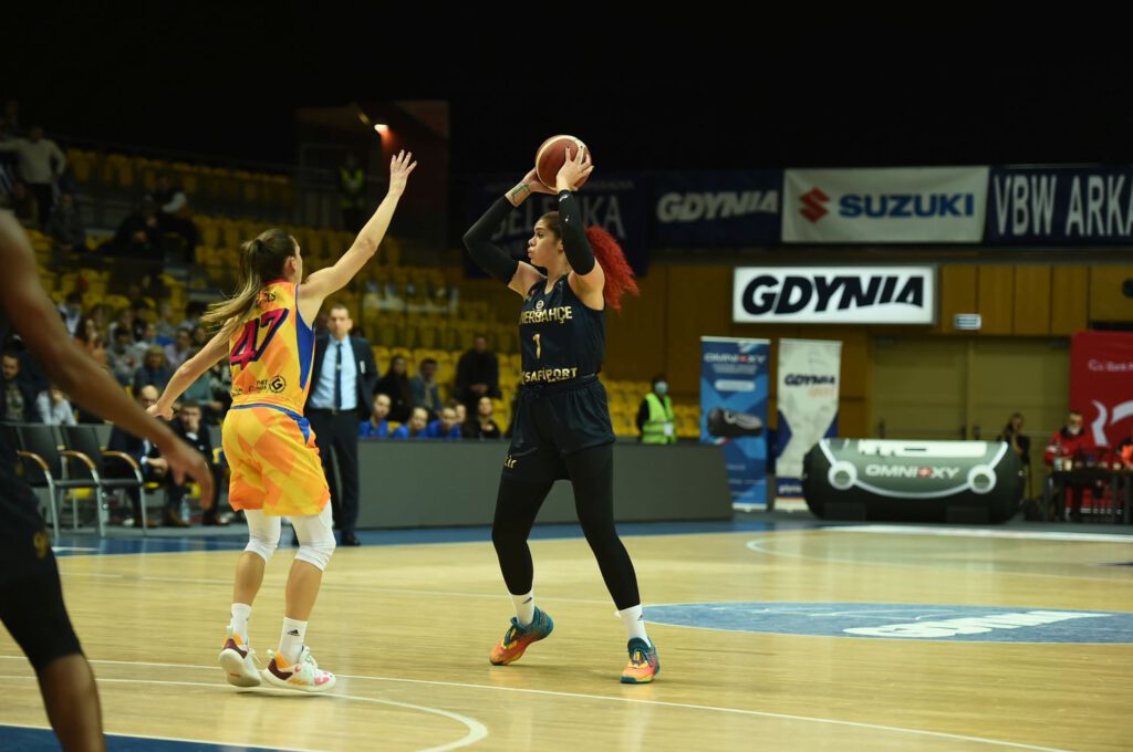 Chociaż… pierwsza kwarta była wyrównana, walka toczyła się praktycznie kosz za kosz. W drugich dziesięciu minutach jednak turecka drużyna się rozkręciła i głównie za sprawą Aliny Iagupovej oraz czerwonowłosej Amandy Zahui przybyszki odskoczyły na 11 punktów. Ukrainka po 20 minutach gry miała na koncie 4 trójki, a jej koleżanka – 2, przy 83 proc. skuteczności z gry. Wśród gospodyń dwucyfrową zdobycz zanotowała do przerwy jedynie Megan Gustafson.