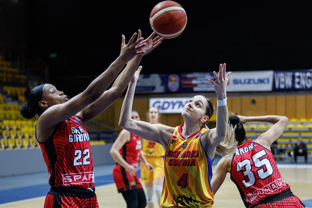 Gdynia: Gustafson 25, Bertsch 19, Pavlopoulou 9 (10 as), Bazan 3, Dobrowolska 3, Kastanek 2, Borkowska 2, Begic 2, Szymkiewicz 0.
