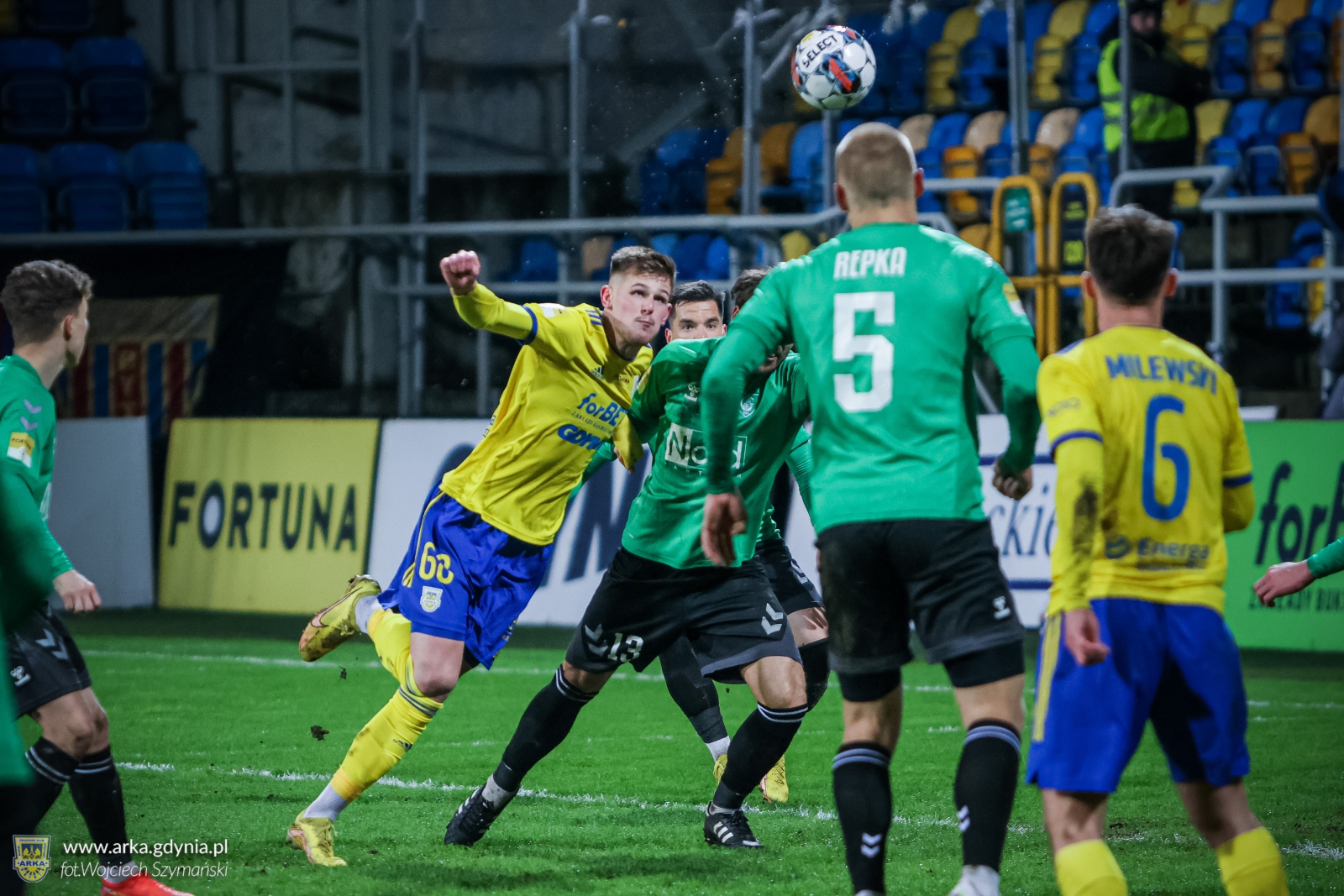 16 – Radość w Gdyni nie trwała długo, szybka akcja gości przeprowadzona lewą stroną boiska sfinalizowana została dokładnym zagraniem Rogali na piąty metr przed bramkę, a tam gdyńskich piłkarzy ubiegł Jakub Arak, zdobywając wyrównanie. 1:1!